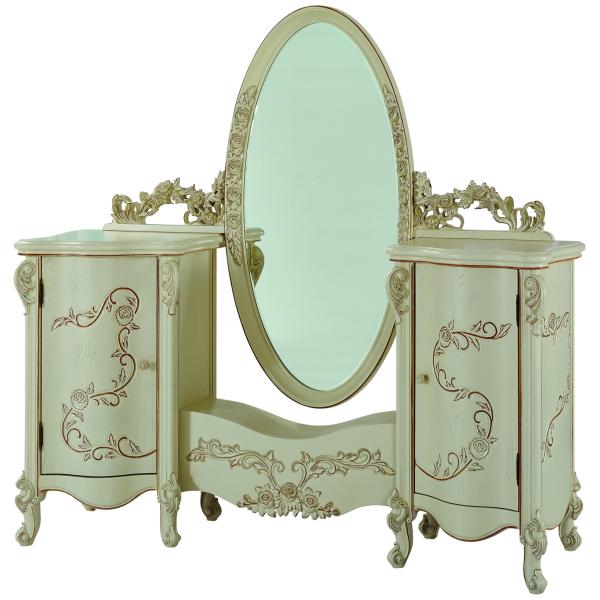 Fancy white Dressing Table with Mirror, Antique French Style Luxury Wooden Dresser Images |